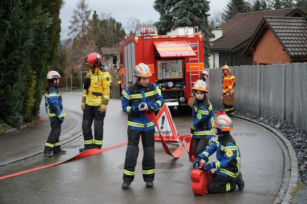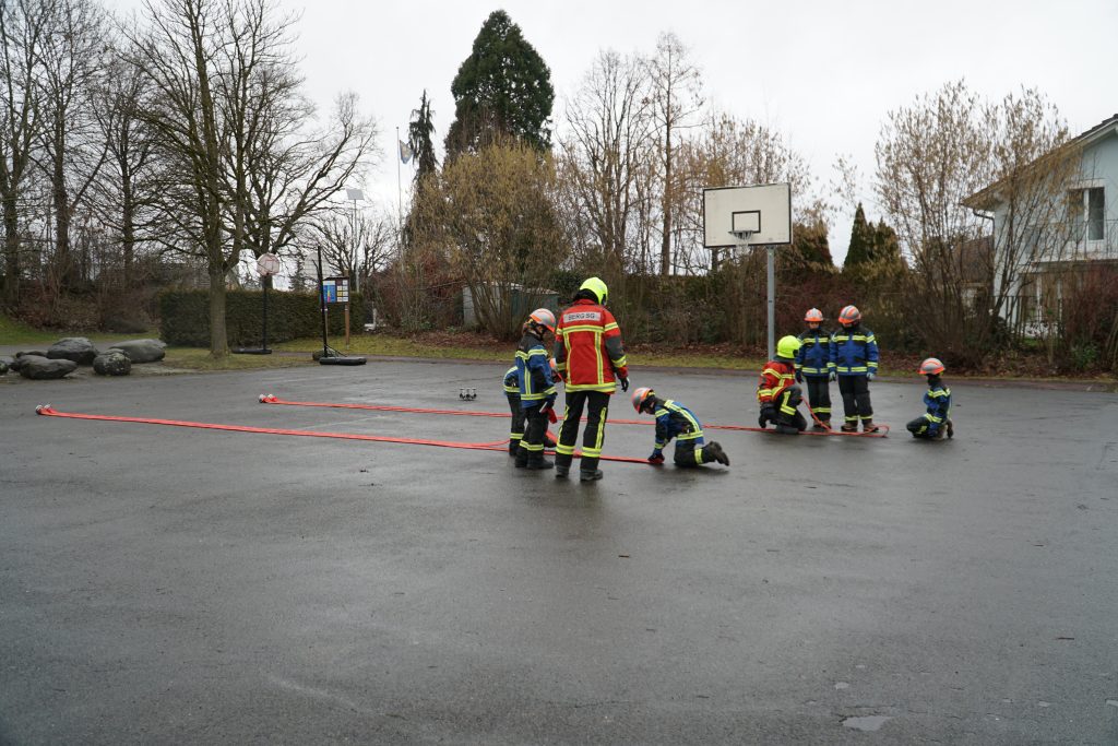 Die Lions, welche ihre zweite Übung im JFT93 absolvierten, setzten sich mit dem Thema Leitungsbau auseinander. Sie erlernten, wie eine Transportleitung oder eine Druckleitung erstellt wird und für welche Zwecke diese eingesetzt werden. Nachdem der Leitungsbau bereits sass, massen sich die ADJF der Klasse Lions in einem Leitungsbau-Wettkampf und traten gegeneinander an, um zu sehen, wer schneller Wasser am Strahlrohr abgeben konnte.
