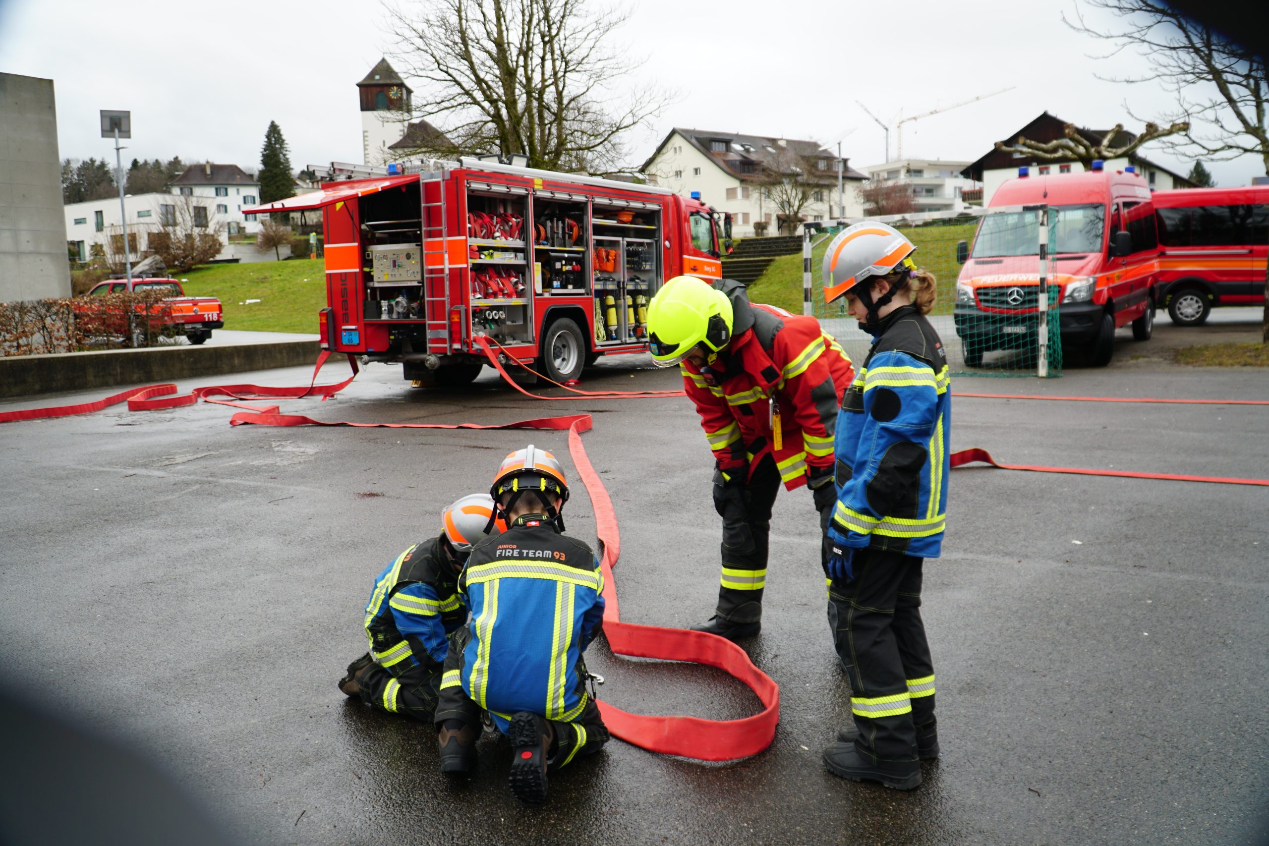 Die Lions, welche ihre zweite Übung im JFT93 absolvierten, setzten sich mit dem Thema Leitungsbau auseinander. Sie erlernten, wie eine Transportleitung oder eine Druckleitung erstellt wird und für welche Zwecke diese eingesetzt werden. Nachdem der Leitungsbau bereits sass, massen sich die ADJF der Klasse Lions in einem Leitungsbau-Wettkampf und traten gegeneinander an, um zu sehen, wer schneller Wasser am Strahlrohr abgeben konnte.